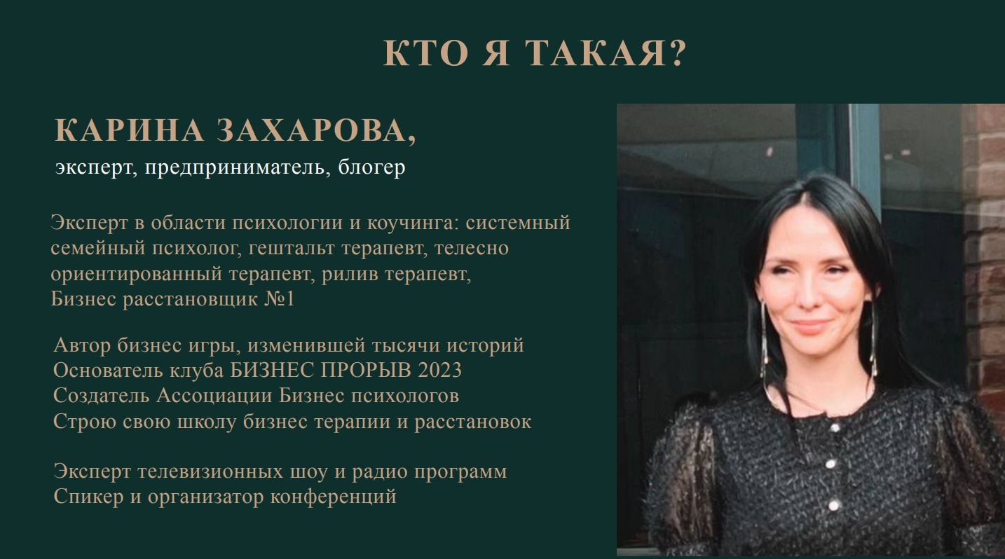 Автор бизнес игры, изменившей тысячи историй Основатель клуба БИЗНЕС ПРОРЫВ 2023 Создатель Ассоциации Бизнес психологов Строю свою школу бизнес терапии и расстановок